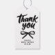 Verschmitzte schwarze Schleife Danke-Gunstanhänger mit spielerischer handgeschriebener Schrift — perfekt für jede Party.