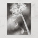 Ein Schwarz-Weiß-Foto einer Dandelion-Pflanze. Die Blume ist vorbei, und jetzt sendet die Brise den Boden für zukünftiges Wachstum.