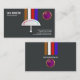 Kardieren Sie Eigenschaften ein aller schwarzer Entwurf, der einen durchdachten Regenschirm hat, gegen die 4 Elemente Natur d.h. zu schützen von Erde, von Luft, von Feuer und von Wasser. Jedes Element wird durch sein eigenes Farbrechteck dargestellt. Brown ist Erde, ist Weiß Luft, ist Rot Feuer und Blau ist Wasser. Dieses Thema läuft von der Front zur Rückseite der Karte. Ihr Name und Position befindet sich an der obersten links Handecke. Alle Beschriftungen sind im Weiß, zum von Berechtigung zu betonen. Die Kontaktdetails sind an der unteren rechten Ecke, unter dem Regenschirm. Herauf Norden ist eine Imitatgoldlogowahl.