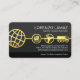 Eine graue Schattierschicht weist eine weltweite Goldlinie auf, die mit den verschiedenen Logistikarten verknüpft ist, d.h. dem Goldschiff, das den Seeverkehr darstellt, dem Flugzeug für Luftfracht, dem LKW für Land und der Computerschicht unterhalb. Die Vorwärtsbewegung des Gold-Trucks zeigt Ihre Führungsrolle in der globalen Arena, Ihren internationalen Standard. Ihr Name und Ihr Jobtitel stehen oben mit den Kontaktdaten und einer Slogan-Beschriftung, die Sie ändern können, an der Basis. Auf der Rückseite, in einem dunkelgrauen Cover, oben ist ein goldenes Globus-Logo, das Sie benutzen können. Darauf folgen Ihr Firmenname, Ihre Kontaktdaten und ein Slogan, um Ihre Dienstleistungen zu bewerben. Eine hervorragende Karte für Logistik-, Transport- und Supply-Chain-Unternehmen. #logistics #supplychain #transport #transport #transport #transportService #Delivery #freightforward #globallogistics #trucktransport #truckdriver #global #zazzlemade