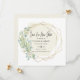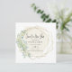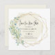 Ein eleganter Weg, um Freunde und Familie lassen wissen, dass Sie Ihre Hochzeit umgestellt haben. Ein goldener geografischer Rahmen umgibt Ihre Daten zum Hochzeitstag. Der weiche, weiße Hintergrund des Elfenbeins hebt den Text hervor. Rett Unser neues Datum ist in einem modernen Skript geschrieben, mit folgenden Details. Sehr hübsche blaue Wildblumen sind in schlängelgrünen Blätter eingebettet und schmücken den geometrischen Goldrahmen. Der rett unseres neuen Kartenhintergrundes ist beige.