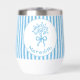 Lass Mama zusammen mit ihrem Lieblingswein oder kalten Getränk einen Tribut genießen mit diesem verspielten und charmanten blau-weiß gestreiften handgezeichneten Monogramm-Isolierbecher-Design. Perfekt für einen Preppy-, Coastal- oder Cottagecore-Stil, ist dieses Design ein perfektes Geschenk zum Muttertag oder Geburtstag. Erstellt von Simply Farmhouse Press.