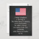 Das "US Pledge of Allegiance" auf einer Tafel sieht mit einer amerikanischen Flagge aus.