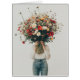 Ein in lässigen Jeans gekleideter Mensch und ein schlichtes, weißes Oberteil halten einen riesigen Strauß an Wildblumen, der ihr Gesicht völlig verdeckt. Die große, farbenfrohe Anordnung von Gänseblüten, Mohn und anderen blühenden Blüten kontrastiert mit minimalistischem Hintergrund und Kleidung und schafft ein auffallendes visuelle, das die Schönheit der Natur betont. Die Szene strahlt ein Gefühl von Laune und Gelassenheit aus, während die Blume die Bühne in den Mittelpunkt stellen und Wachstum, Leben und Einfachheit symbolisieren.