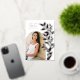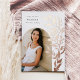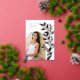 Die schicke und moderne Ankündigung des Abschlusses zeigt ein Single vertikal/portrait orientiertes Foto in einem gewölbten Layout, mit kletternden Reben aus Rose Gold-Folie botanische Blätter auf der rechten Seite. Personalisieren Sie den Namen Ihres Absolventen, das Schuljahr und die Schule, und fügen Sie eine persönliche Nachricht auf den Rücken, zusammen mit einem zusätzlichen Foto.