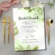 Un beau menu de brunch pour votre fête de la douche nuptiale. L'élégante carte du brunch propose une calligraphie avec une présentation minimaliste du menu. Les cartes sont également de style botanique floral et décorées en feuille.