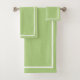 Jeu de serviettes moderne Joyau de menthe vert clair avec bordure blanche Beau ensemble pour votre bain d'hôtes en couleur riche avec tuyaux blancs. Les couleurs comprennent le cacao chaud, le marigold de minuit, crème fraise, bleu pastel, riche turquoise, grenadine, ...ou customisez à votre propre couleur.