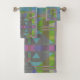 Formes géométriques colorées motif, oeuvre d'art sur mesure dans des tons proéminents de vert, bleu, violet, rose et avec des nuances supplémentaires d'argent, gris, or. Elégant design art numérique tendance.