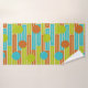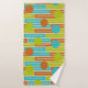 Ce kit de serviettes est doté d'un linge vert citron, d'une serviette brun cannelle et d'une serviette de bain au design moderne du milieu du siècle avec des rectangles extensibles en vert citron, marron cannelle et turquoise avec des cercles superposés.