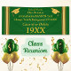 Bannière personnalisée de la Réunion de classe de vert et d'or ou bannière d'obtention du diplôme. Dactylographiez dedans votre texte dans les 3 modèles de zone de texte en cliquant sur le "ABC personnalisent ce modèle". APPELEZ le concepteur Linda : 239-949-9090 ou vous pouvez, CHANGER les COULEURS DU TEXTE ET DE L'ARRIÈRE-PLAN de vert et d'or. Le concepteur Linda peut changer les casquettes d'obtention du diplôme et folâtre des rayures à n'importe quelle combinaison de couleurs.