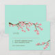 De jolies fleurs de cerisier rose saumon et des tourtereaux adorables sur fond vert menthe ornent cette suite de faire-part de mariage moderne et simple. Ce design est parfait pour les mariages sur le thème asiatique dans un jardin.
