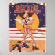 Vintage Poster aus dem Zweiten Weltkrieg von Onkel Sam rollt seine Ärmel hoch. Das Flag Motiv ist im Hintergrund. "Verteidigen Sie Ihr Land" ganz oben