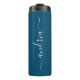 Vertical White Script Name, Ocean Blue Thermosbecher