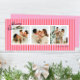 Kleine rosa und korallenrote Streifen verleihen dieser drei Foto-Urlaubskarte eine moderne und schicke Atmosphäre mit klassischen Schriftart und eine lange, individuelle Nachricht für Freunde und Familie.