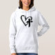 Dieser Hoodie hat ein Herz, das von einem Kreuz auf der Vorderseite durchbohrt wird, und eine Nachricht auf der Rückseite, um Gott zu danken und Gott zu vertrauen.