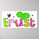 Niedliche und dekorative, skurrile Textnachricht, die das Wort TRUST enthält. Der Hintergrundbereich ist vollkommen transparent, sodass Sie jede gewünschte Farbe leicht anpassen und auswählen können. Bilder auf verschiedenen Geschenken und Produkten erhältlich.