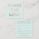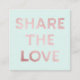 Teilen Sie die Liebe im herrlichen Weiche erröten rosa schimmernde Typografie mit weichem blauem Hintergrund mit Pfefferminzaroma. Einfach, schick, Empfehlungskarten des weißen Quadrats des Designers, die in Sätze von 100 kommen. Sehr erschwinglich um ungefähr 25 Cents jeder!