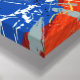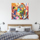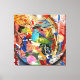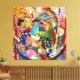 Ein lebendiger und chaotischer Mix aus Farben, Formen und Linien bildet eine abstrakte Komposition. Der runde Rahmen in der Mitte scheint die dichte und energetische Explosion von Farben zu enthalten, die ihm ein Gefühl von Tiefe und Bewegung verleiht.