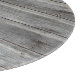 Eine rustikale verwitterte graue hölzerne Wand steht gegen den Test der Zeit auf den Nordebenen. Jahre in den Elementen haben das Holz zu einem schönen silbernen Grau und die Nägel zu einer rostigen orange Farbe verwittert.