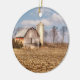 Verwitterte Scheune u. Silo im Getreidefeld Keramik Ornament