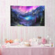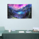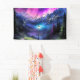 Machen Sie einen Spaziergang durch diesen bezaubernden Wald in einer nebeligen Nacht unter den glitzernden, stürmenden Sternen und der tanzenden Aurora Borealis, auch bekannt als die Nordlichter. Die Hügel sind durch das Glühen von Halos, die unter ihnen von den alten Öllampen gegossen werden, die die Wege abgrenzen, die sich durch die sanften Hügel ziehen. Das endlose Glühen aus dem Himmel und die Öllampen reißen sich reflektiv auf den Wegen ab, die noch nass sind vom morgendlichen Regen.