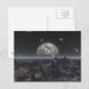 Digitale Darstellung eines Planeten der Alien mit einem Mond über einem Ozean und einer Meteordusche.
