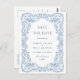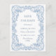 Elegante Vintage Blauer Französischer Garten Blumenhochzeit Speichern Sie das Datum Postkarte.