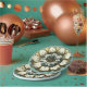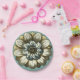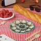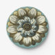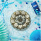 Verzierte Blumenmedaille über hellblauen Hintergru Pappteller