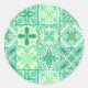 Verzierte grüne und weiße Fliesen Runder Aufkleber
