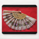 Verzierter Handheld-Lüfter auf einem roten Hinterg Mousepad