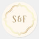 Elegante Monogramm Aufkleber mit Imitaten Goldfolie verziert und cremefarben.