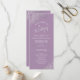 Dieses wunderschöne Hochzeitsprogramm zeichnet sich durch ein elegantes Design aus, mit weißem Text auf einem staubigen lila oder lavendelfarbenen Hintergrund und lackierten silbergrauen Imitat-Folienkanten und Wirbel in den Ecken. Die Titel sind in extravaganter Skriptkalligraphie geschrieben, und es gibt Platz für Ihre Zeremonie und Hochzeitsfeier Details, sowie ein kurzes Dankeschön für Ihren Gast. Ein wunderbarer Weg, um Ihre Freunde und Familie zu Ihrer Hochzeitsfeier zu begrüßen.