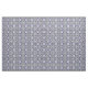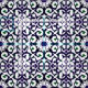 Intrikiertes symmetrisches Design mit Blume-Motiven mit vorherrschenden lila- und grünen Akzenten auf weißem Hintergrund, die einen künstlerischen und dekorativen Stil hervorrufen.
