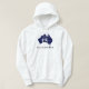 Une simple silhouette blanche d'un traîneau à chiens et de la Croix du Sud superposée sur une carte bleue de l'Australie. Tout sur un arrière - plan de starfield. Qui l'aurait nié ? Il se déplace à l'envers à Oz. Le traîneau à chiens est très populaire en Australie. Au Mont Hotham à Victoria, il y a une grande course chaque année.