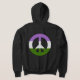 Sweat - shirt à capuche avec un symbole de paix dans les couleurs du drapeau de la fierté de la genderqueer. Panneau vert, blanc et violet sur un arrière - plan violet