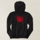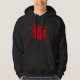 Ce sweatshirt à capuchon noir présente une image d'art graphique en étoile rouge.