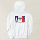 Sur un sweat - shirt à capuche 3X blanc… sur le dos du sweat - shirt à capuche nous avons 2 drapeaux représenter les îles de l'Américain et le Samoa-Occidental, s'asseyant tout droit. Également au milieu, le mot SAMOA est sur les épaules d'un homme Samoan fort. Et sous les 3 images sont les mots, "meilleur des les deux le monde."