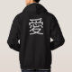 Le texte kanji, ai, signifie amour, il est disponible sur différents produits, stands et tailles.
