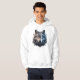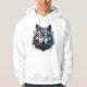 un sweat - shirt à capuche noir avec une illustration frappante du visage d'un loup sur le devant. La fourrure détaillée du loup est illustrée dans les tons gris et blanc, ce qui lui donne un aspect vivant. Les yeux du loup ont un regard intense et ciblé, ajoutant à l'atmosphère féroce et majestueuse de la conception. Le sweat - shirt à capuche lui-même apparaît confortable et décontracté, ce qui le rend adapté à l'usure quotidienne, tandis que le graphisme loup lui donne un côté audacieux et dédicace.