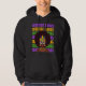L'élégant MARDI GRAS Afro Queen Sweat - shirt à capuche dans les couleurs populaires de violet, or et vert. Le dessin montre une femme noire avec une grande afro et portant un masque. L'expression MARDI GRAS est répétée dans les mêmes couleurs dans l'arrière - plan. Idéal Mardi Gras sweatshirt à porter dans les rues de Louisiane, de la Nouvelle-Orléans, au Brésil, et partout Mardi Gras est célébré.