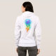 Grande méduse irisée, artistiquement dessinée, brillante, avec de longues tentacules sur le blanc, peinte sur l'arrière - plan multicolore. Méduse arc-en-ciel.
