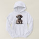 Portrait d'un mignon chiot allongé, montrant ses yeux expressifs et son regard réfléchi, soulignant une présence chaleureuse et attachante.