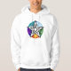 Artistically drawn, luminous pentagram with five magical elements, water, earth, fire, astral, air on black background. Wiccan pentagram. Wicca