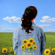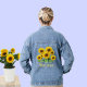 Élégant tournesol jaune avec texte jaune clair Denim Jacket. Le texte peut être personnalisé.