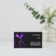 Modèle de carte de visite avec un design rétro sérigraphie avec une veste moto en cuir des années 80 en noir, violet et blanc. Un design personnalisable pour personnaliser avec votre propre texte, photos et idées. Image créée à partir d'une photographie utilisant des techniques numériques.