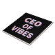 Listen up, future Vibe CEOs! This ain't just a design, it's a lifestyle upgrade. We've reverse-engineered the very essence of chill and bottled it into this graphic. Wearing this instantly promotes you to the CEO of your own reality, granting you executive powers over your vibes. Rumors say it unlocks secret dance moves, attracts positive energy like a magnet, and makes you immune to bad moods (results may vary, but probably not).