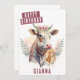 Une carte d'anniversaire mignonne avec une vache célébrant le printemps sur le devant avec "Joyeux anniversaire" en caractères gras tout casquette. Personnalisez le devant en ajoutant votre ou vos nom(s). L'arrière de la carte offre de l'espace pour votre message dactylographié ou manuscrit.