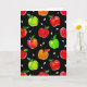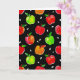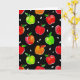 Handgemalte, lebendige Aquarelläpfel in Rot, Grün und Gold. Es ist mit weißen Apfelsamen betont und auf einem schwarzen, benutzerdefinierten Hintergrund dargestellt. Wählen Sie die gewünschte Hintergrundfarbe aus und machen Sie das Muster groß oder klein, damit diese Grußkarte für Sie genau richtig ist. Spaß Design für Herbst, Apfelfreunde oder sogar Lehrer für zurück zur Schule!