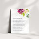 Diese eleganten Blumenkarten, die zu unserer Hochzeitskollektion "Vibrant Bloom" passen, sind mit einem Strauß von Aquarellfarben und Rose in farbenfrohen, kräftigen violetten, lila, rot-grünen Farbtönen gestaltet. Fragen Sie, welche Informationen auf einer Hochzeitseinladung einfügen? Denken Sie an Details wie Hotelunterkünfte, Gruppennummern, Transport, Anfahrtsbeschreibung, Informationen zum Empfang und Ihre Hochzeitswebsite url. Sie können sogar eine Karte mit der Funktion Anpassen auf die Rückseite hochladen.