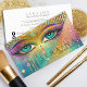 Diese Visitenkarte besticht durch goldfarbene und türkisblaue Augen und strahlt mit Glitzer und Edelsteinen aus. Sie ist perfekt für einen Makeup-Künstler, der eine kühne Aussage machen möchte. Das lebendige und böhmische Design ist ideal für Theater-, Redaktion- und Spezialeffekte. Die dramatische und glamouröse Ästhetik appelliert an Kunden, die einen beruflichen Kosmetologen mit einem Flair für Kreativität suchen.